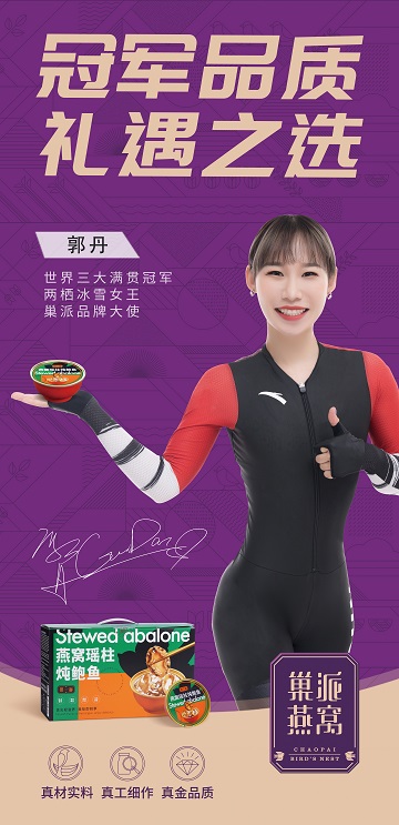 巢派燕窝与世界冠军牵手合作:世界冠军郭丹担任巢派燕窝品牌形象大使!